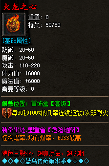 本服每个地图都有一套BOSS装备,2件高级BOSS手戒,首饰盒BUFF神器,高级BOSS手戒单件触发套装属性,